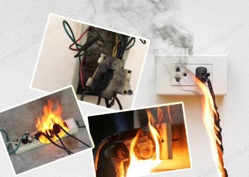 • Nguồn điện quá tải: Sử dụng thiết bị có công suất lớn và tần suất cao như máy lạnh, lò vi sóng có thể làm tăng dòng điện, dẫn đến tình trạng quá tải và chập cháy.
